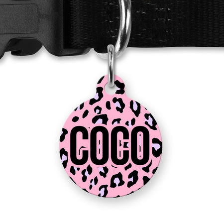 Personalised Pink Leopard Print Dog Tag